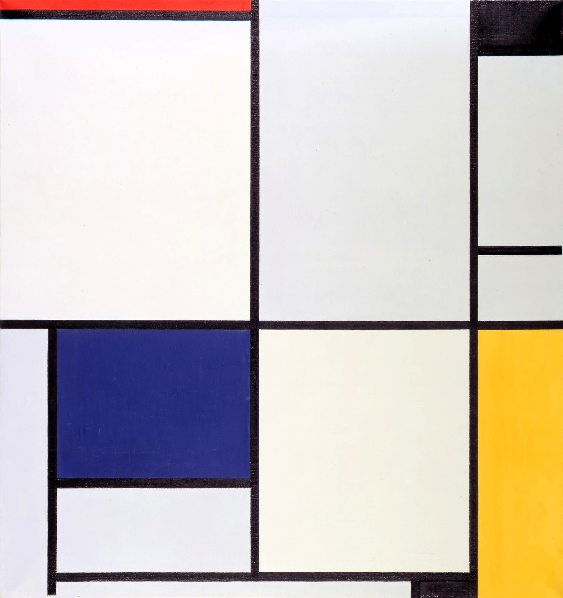 Lätt, praktisk och slitstark väska som kan bäras över axeln eller fästas runt höften. Mönstren i denna kollektion är inspirerade av Piet Mondrians målning "Composition with red, blue and yellow” från 1930 (se bild). I mönstren blandas penseldrag med pixlar.
